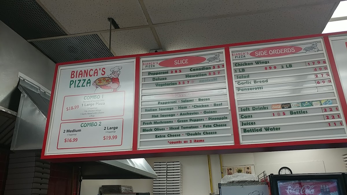 The atmosphere at Bianca's is warm and inviting, with a friendly staff dedicated to ensuring your dining experience is delightful and memorable. You'll feel at home here, whether you're grabbing a quick slice on the go or settling in for a cozy dinner with friends. And don't forget to pair your pizza with their irresistible Chicken Wings – the perfect crunchy complement to your meal, renowned for their rich flavor and generous portions.
